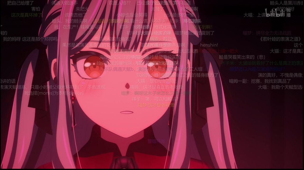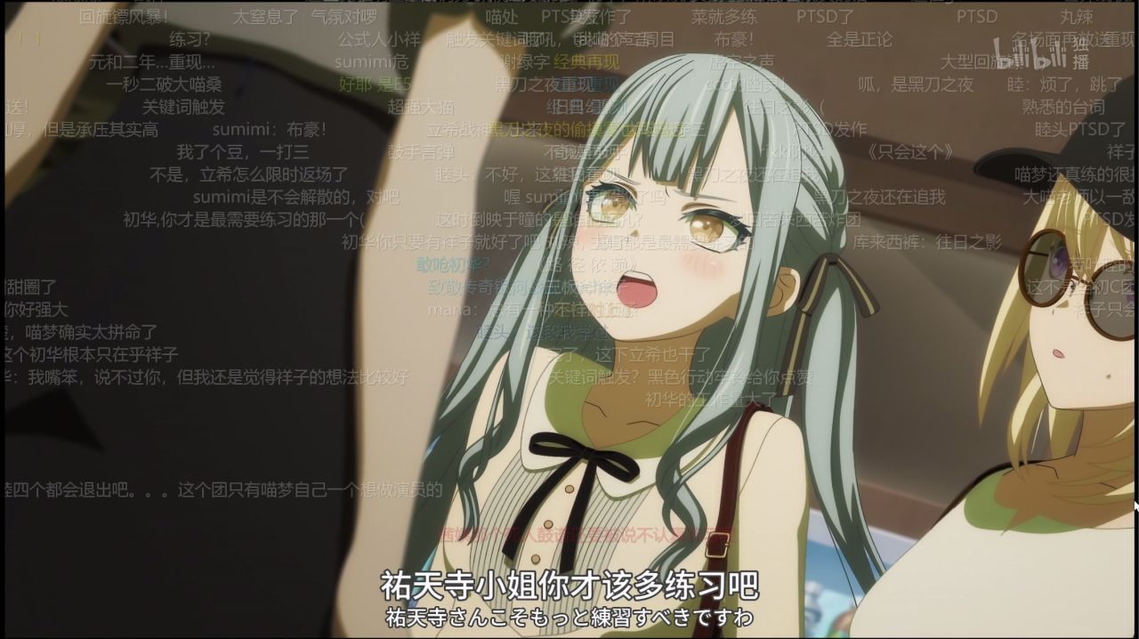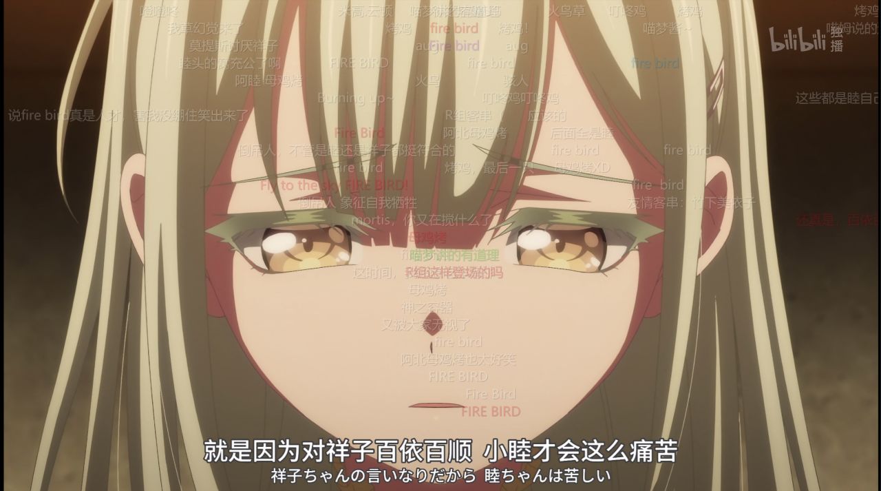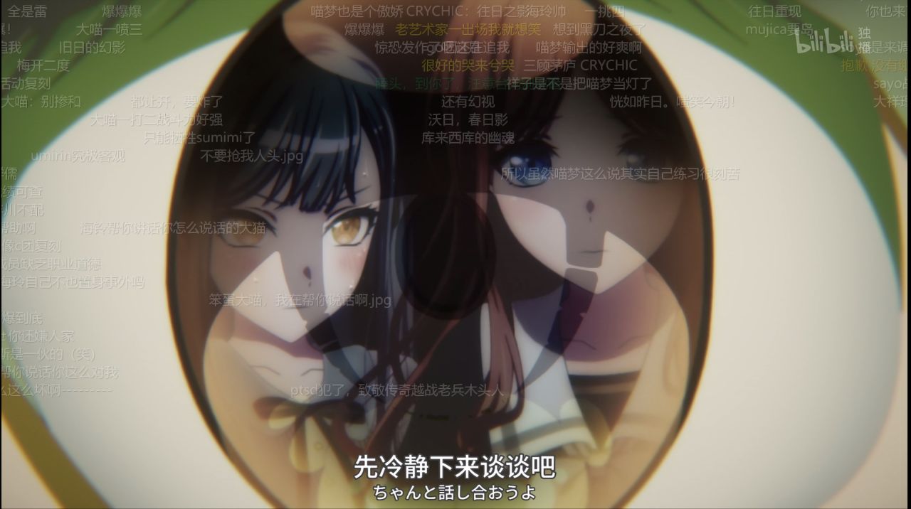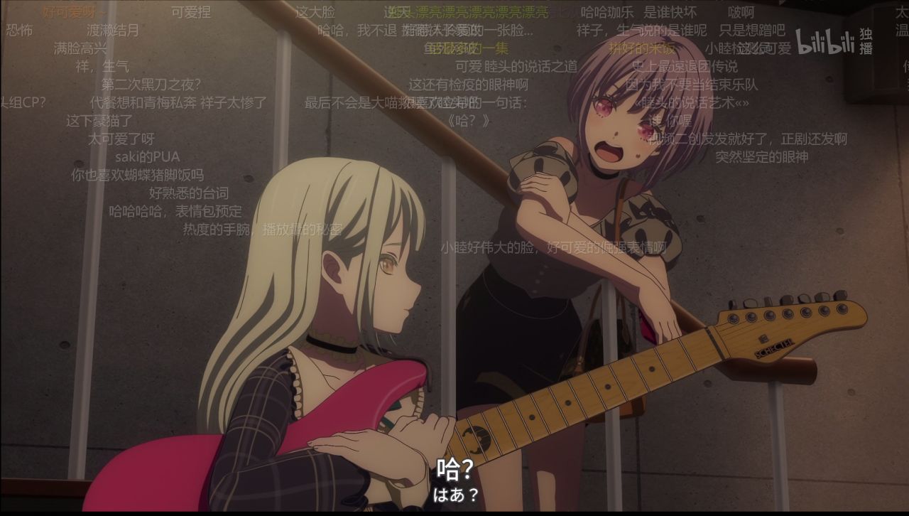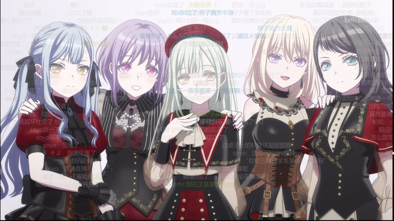 刚开始看不清楚他们是因为祥子的救场能力还是睦头的“演出”感到震惊,后面想了想,应该还是母子米的表演让吓了一跳,也算是为后面mortis表演大火做铺垫了